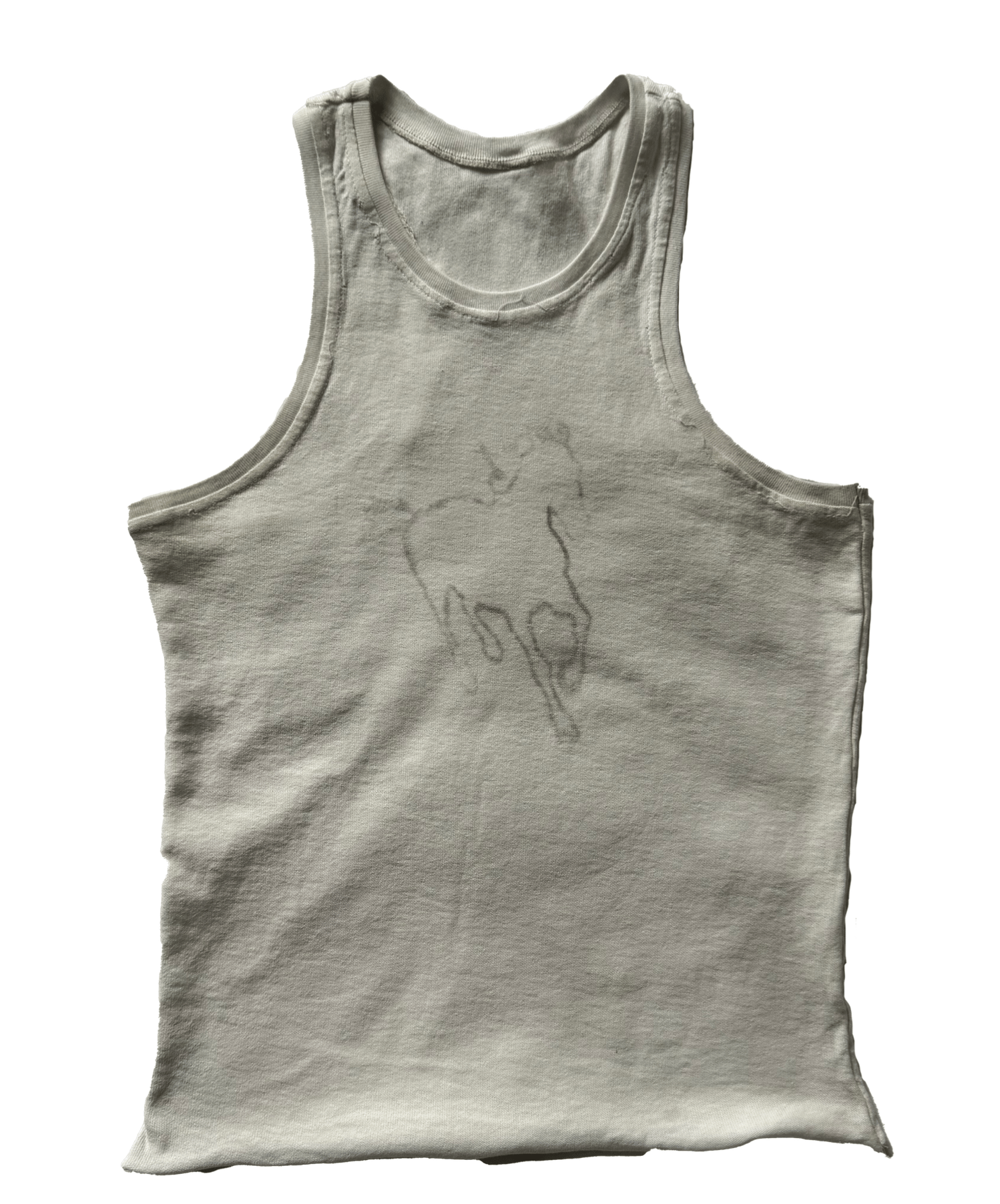 HEAVYWEIGHT 100% COTTON JERSEY RACER-TANK WITH A PRINTED HORSE GRAPHIC AND CUSTOM SILK TAG. TAILORED FOR A CLEAN, FITTED LOOK WHILE MAINTAINING COMFORT. LOST HIGHWAY COLLECTION.